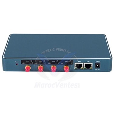 Type de module : GSMNuméro de module : 4Numéro de canal : 4Bande : GSM : 850/900/1800/1900 MHzPoids (sans antenne) : 527gPuissance : 28 WDimensions (sans antenne) : 206*125*27mmCarte SIM : échange à chaudRéseau local : 1 x 10/100 MWAN : 1*10/100MTempérature de fonctionnement : 0℃ ~ 40℃Plage d'humidité de fonctionnement : 10 % à 90 %Plage de température de stockage : -20℃ ~ 70℃ - Plus d'images (2)