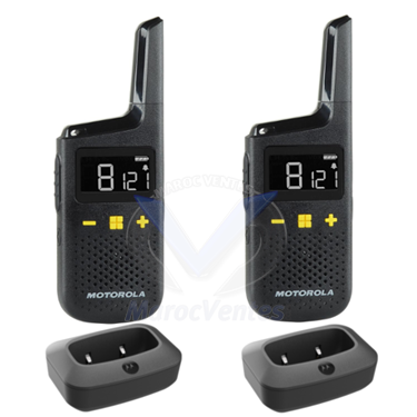 - Possibilité de charger le talkie-walkie via la prise micro USB ou grâce au socle chargeur inclus