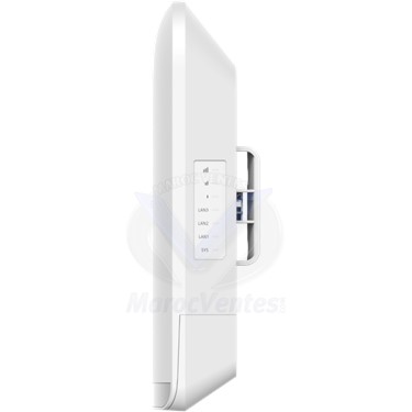 - Triple option d'alimentation : 802.3af/at, PoE passif ou 12V DC- Technologies TDMA et SON (Self-Organizing Network)- Antenne intégrée haute performance 13 dBi en 5 GHz- Protection contre les surtensions et certification IP55- Interface de gestion cloud intuitiveCaractéristiques TechniquesStandard Wi-Fi 802.11ac/n/a (5 GHz), 802.11b/g/n (2.4 GHz)Débit maximal 867 Mbps (5 GHz) + 150 Mbps (2.4 GHz)Ports 3 x 10/100 Mbps (dont 2 PoE-Out)Alimentation 802.3af/at, PoE passif 24V, 12V DCProtection IP55Portée maximale 3 kmDimensions 198.8 x 102 x 53.4 mm - Plus d'images (5)